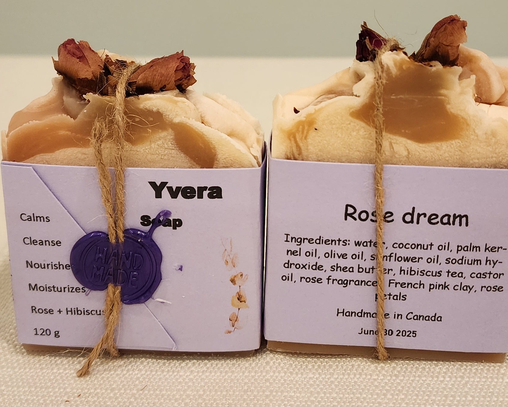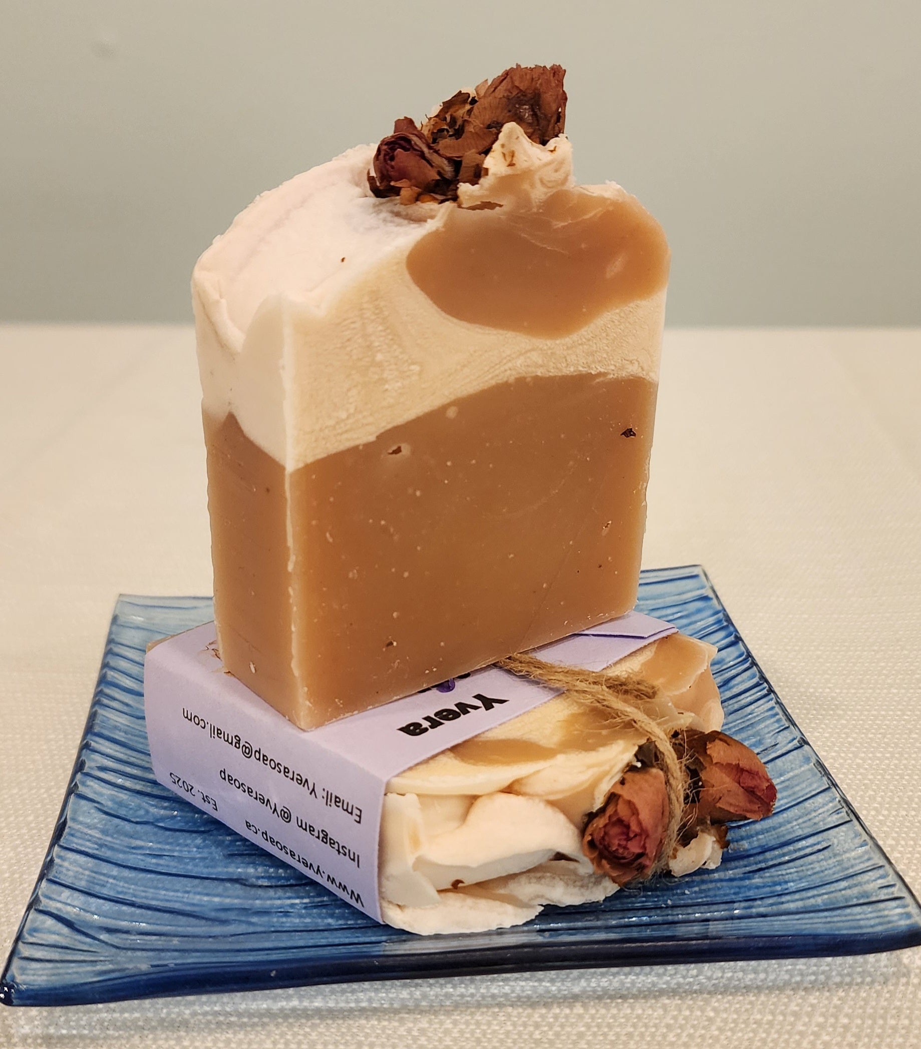 Delicately scented with rose and hibiscus tea, each lather releases a gentle floral aroma - calming, romantic, and uplifting. Decorated with real rose buds, this soap transforms your daily cleansing ritual into a moment of pure indulgence, and self- care.
